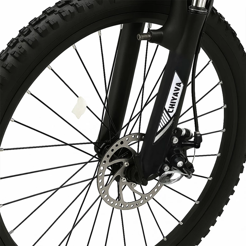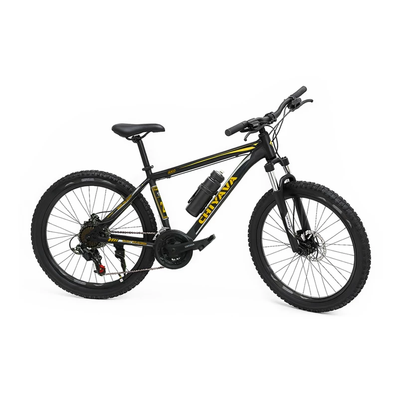 دوچرخه چیاوا مدل آکو سایز طوقه 24 اینچ مدل دنده ای 21 سرعته ترمز دیسکی دوشاخ کمک دار رنگ مشکی مات کد 601157